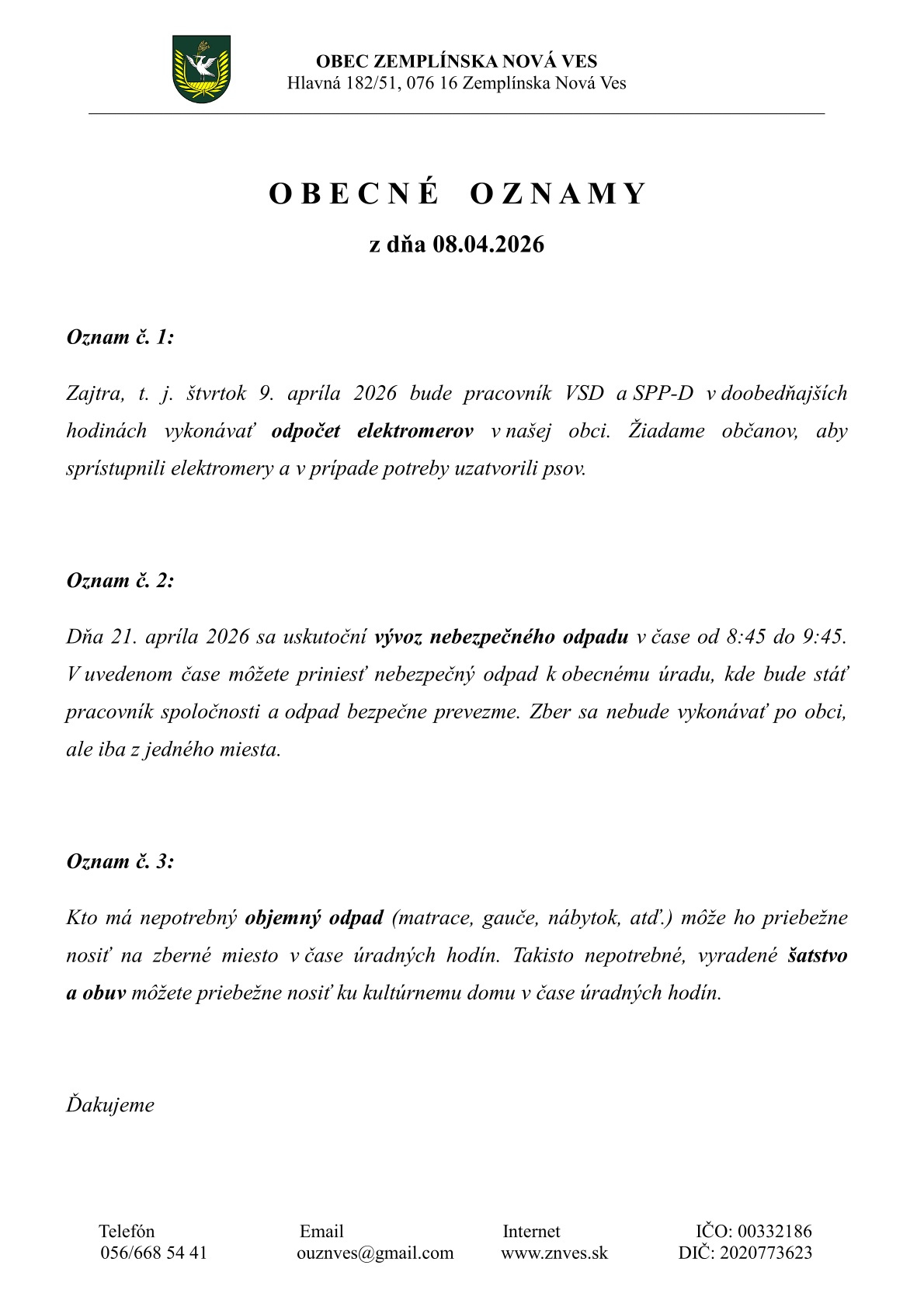Toto je oficiálna webová stránka obce Zemplínska Nová Ves.